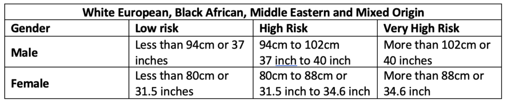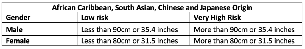 Below are two tables from the National Health Service showing the risks of getting cardiovascular disease, depending on our waist size: